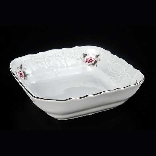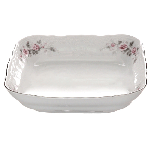 Салатник квадратный 25 см «Бледные розы, отводка платина» (форма "Bernadotte")