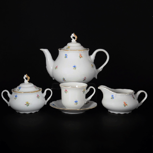 Сервиз чайный "Мелкие цветы, отводка золото" (форма "Констанция")