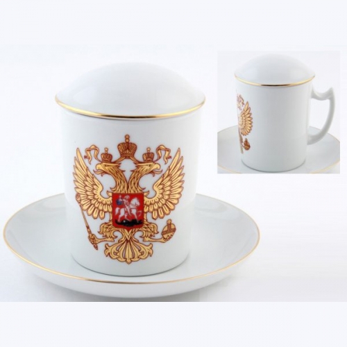 NEW Бокал с блюдцем и крышкой «Двуглавый орел» 380 мл (форма «Снежное утро»)